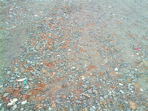 為了解建筑垃圾路基填筑后建筑垃圾填料的內(nèi)部分布密實情況,將路基挖開至地基層以下,露出整個填筑路基的斷面。經(jīng)過觀察發(fā)現(xiàn)建筑垃圾再生料顆粒分布均勻,內(nèi)部結(jié)構(gòu)密實穩(wěn)定。