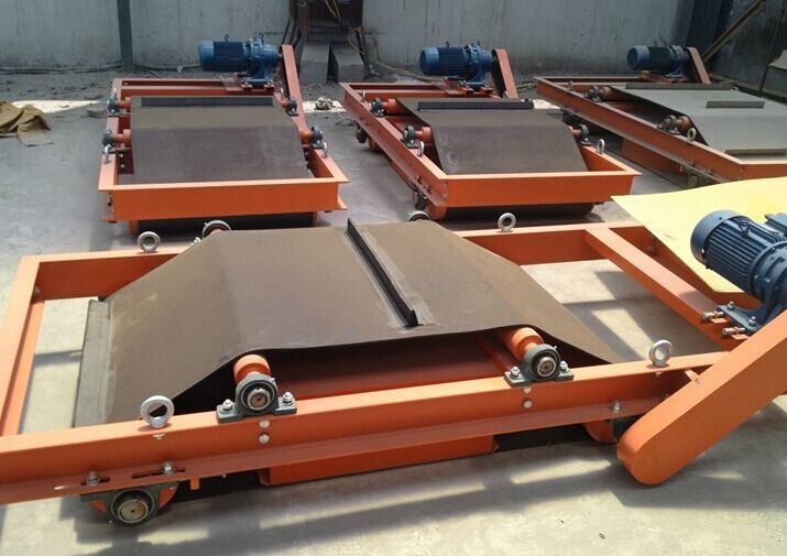 永磁除鐵器是采用永磁材料作為磁體的一種環(huán)保、節(jié)能型設(shè)備。自卸式永磁除鐵器是由高性能永磁磁芯、減速電機(jī)、框架、滾筒等部分組成。位于輸送帶上方的永磁磁鐵將混雜在物料中的鐵質(zhì)雜質(zhì)帶走。并通過除鐵器上的刮板不斷的將吸附在永磁上的雜質(zhì)刮出,從而達(dá)到自動(dòng)除鐵的目的。